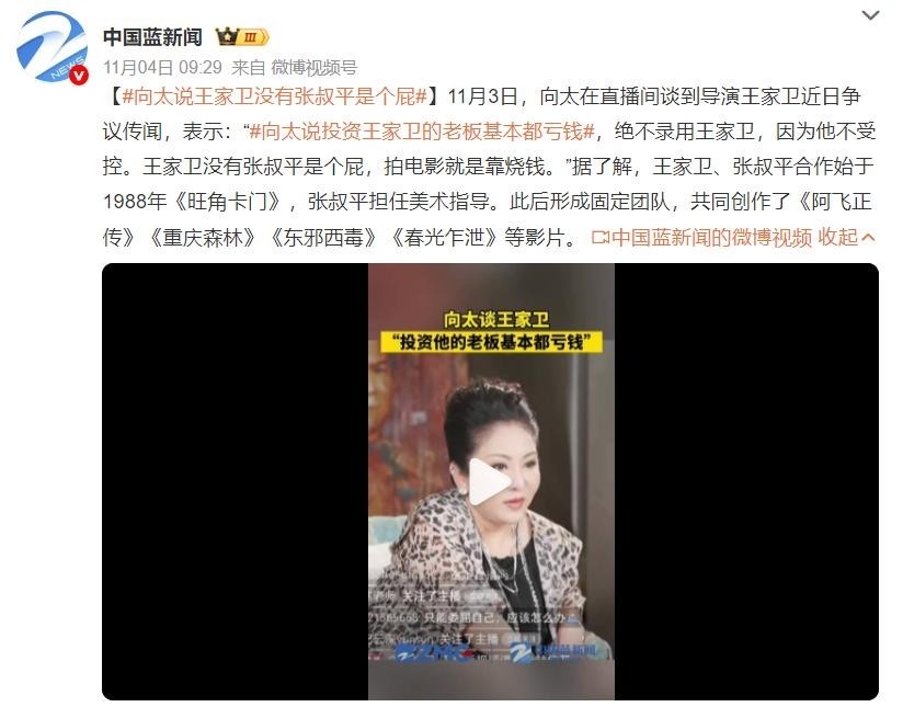 10. 向太对王家卫的尖锐批评,迅速在网络上激起千层浪。